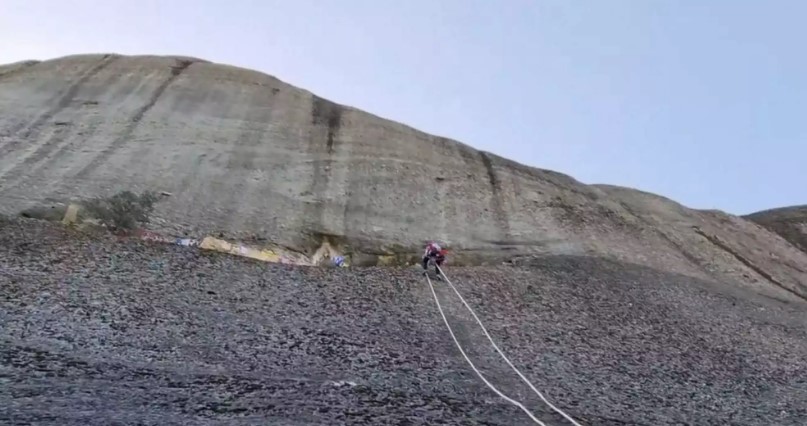 Αναρριχητές ανέβηκαν στα απόκρημνα Μετέωρα για να μεταφέρουν τα μαντήλια – τάματα στον ιερό βράχο του Αγίου Γεωργίου του Μαντηλά, όπως επιβάλλει το έθιμο της Δευτέρας του Πάσχα (25.04.2022), έθιμο που χρονολογείται από την περίοδο της τουρκοκρατίας.