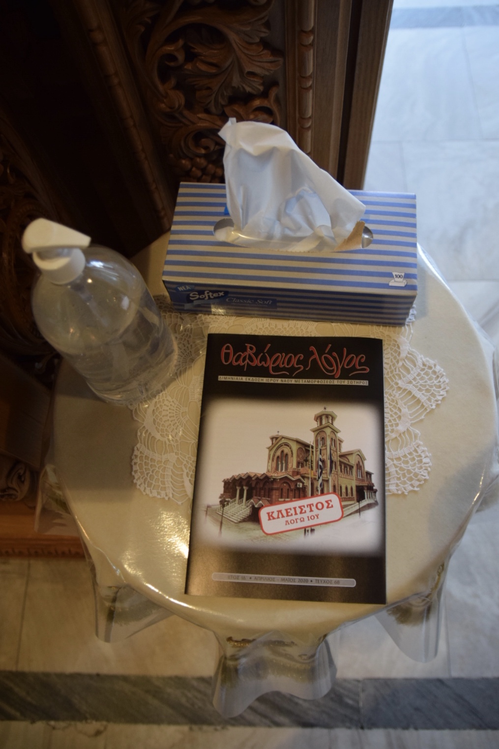 Όπως διαφαίνεται και στις φωτογραφίες, έχουν ληφθεί τα κατάλληλα μέτρα ώστε οι πιστοί να εισέρχονται με ασφάλεια στον ιερό ναό.