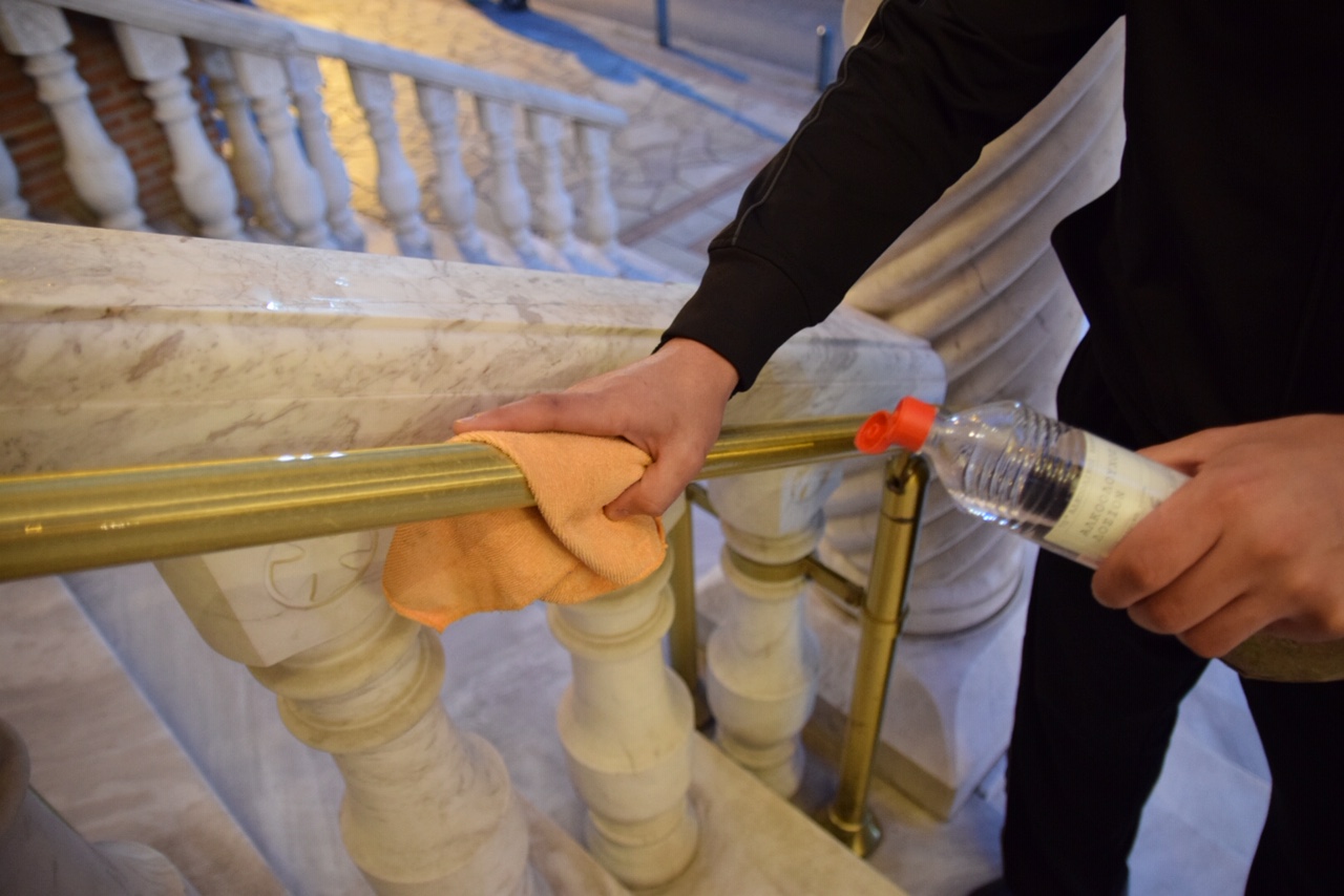 Όλες οι επιφάνειες στις οποίες έχει πρόσβαση ο κόσμος απολυμαίνονται κατάλληλα .