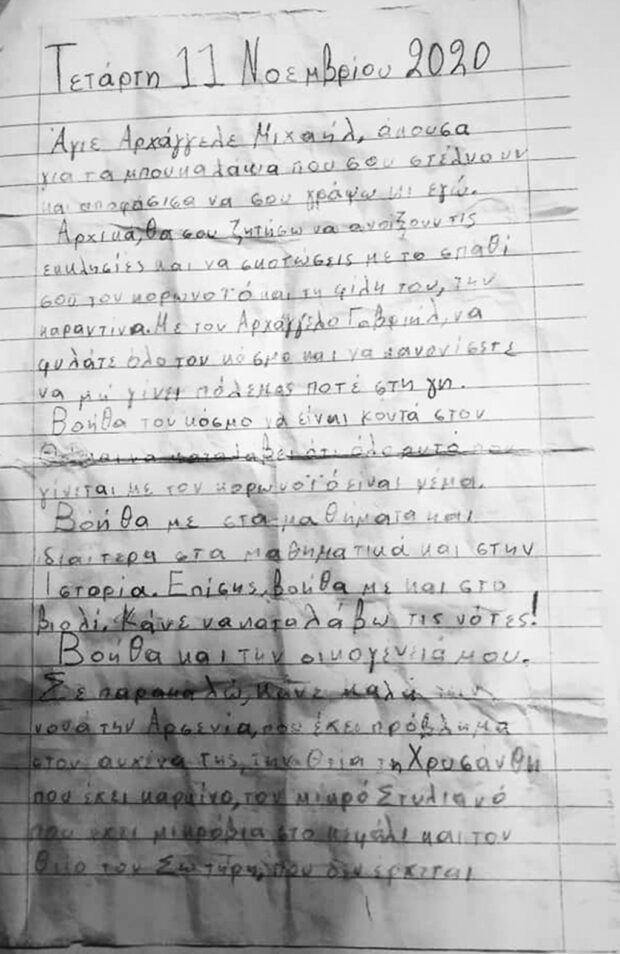 «Αγιε Αρχάγγελε Μιχαήλ, άκουσα για τα μπουκαλάκια που σου στέλνουν κι αποφάσισα να σου γράψω κι εγώ.