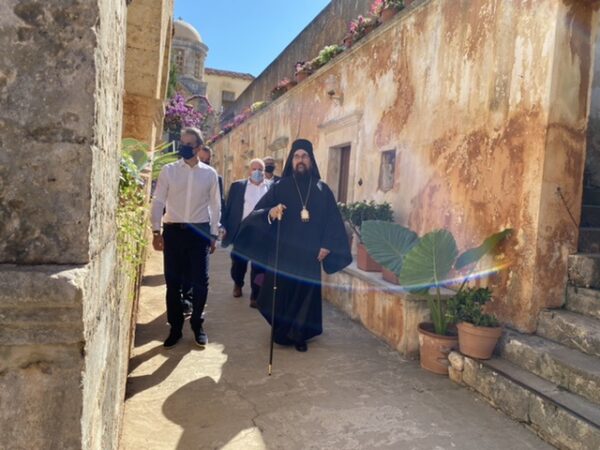 Μετά το πέρας της Θείας Λειτουργίας ο Θεοφιλέστατος ξενάγησε τον Πρωθυπουργό στις εγκαταστάσεις της Μονής όπου και ο ίδιος έχει δείξει μεγάλο ενδιαφέρον και έχει αναλάβει με προσωπικές ενέργειες για την ανακαίνιση του Μοναστηριού.