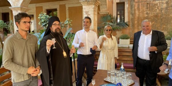 Την Ιερά Πατριαρχική και Σταυροπηγιακή Μονή Αγίας Τριάδος των Τζαγκαρόλων στο Ακρωτήρι Χανίων επισκέφτηκε το πρωί της 15ης Αυγούστου ο Πρωθυπουργός της Ελλάδος κ. Κυριάκος Μητσοτάκης μαζί με την σύζυγο του Μαρέβα και τον υιό του Κων/νο, όπου παρέστη συμπροσευχόμενος στην Αρχιερατική Θεία Λειτουργία που τέλεσε για την Θεομητορική εορτή της Παναγίας ο Θεοφιλέστατος Επίσκοπος Δορυλαίου και Καθηγούμενος της Μονής κ. Δαμασκηνός.