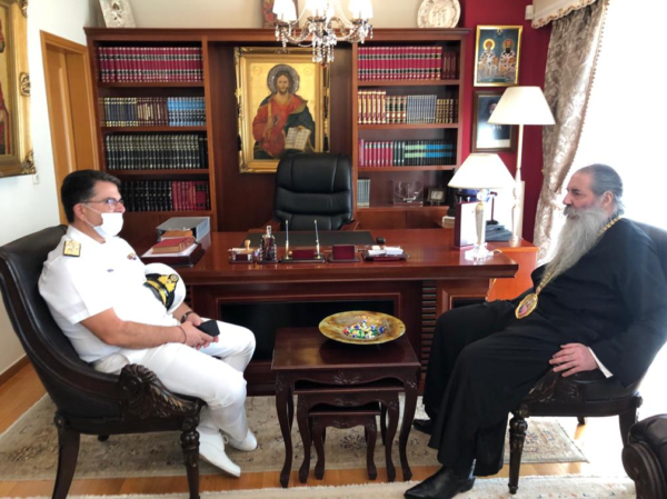 Ο νέος Λιμενάρχης Πειραιά Αρχιπλοίαρχος Λ.Σ. Γεώργιος Σκανδάλης, επισκέφθηκε την Δευτέρα 21 Σεπτεμβρίου 2020 στο γραφείο του, τον Σεβασμιώτατο Μητροπολίτη Πειραιώς κ.Σεραφείμ.