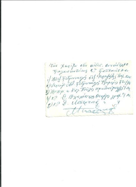 Η ιδιόχειρη αφιέρωση του π. Αθανασίου στο πίσω μέρος της φωτογραφίας: