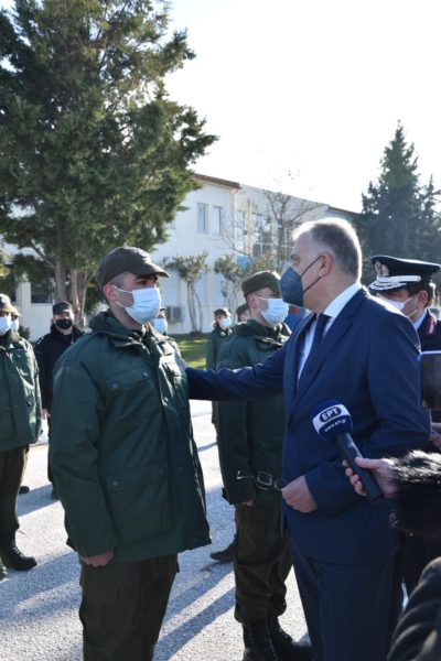 Μετά την ακολουθία του αγιασμού, στην οποία χοροστάτησε ο Μητροπολίτης Μαρώνειας και Κομοτηνής κ. Παντελεήμων, ο υπουργός Προστασίας του Πολίτη είχε την ευκαιρία να συνομιλήσει με ειδικούς φρουρούς, να τους ευχηθεί καλή επιτυχία στο έργο τους, τονίζοντας ότι το υπουργείο και η ΕΛ.ΑΣ. θα βρίσκονται πάντα στο πλευρό τους.