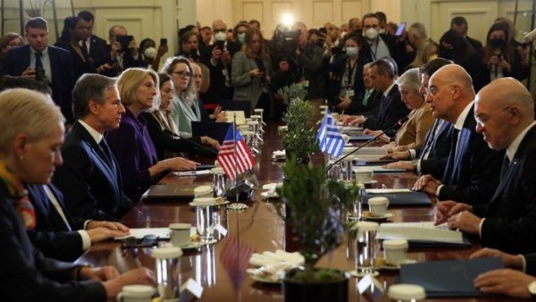 Τον πρωταγωνιστικό ρόλο της Ελλάδας σε ό,τι αφορά την ενίσχυση της ασφάλειας και την ενεργειακή μετάβαση στην περιοχή εξήρε ο Αμερικανός υπουργός Εξωτερικών ‘Αντονι Μπλίνκεν στις εισαγωγικές δηλώσεις κατά την έναρξη του 4ου γύρου του Στρατηγικού Διαλόγου Ελλάδος-ΗΠΑ, ενώ υπογράμμισε πως οι ΗΠΑ είναι ευγνώμονες για την ακλόνητη υποστήριξη της Ελλάδας στην Ουκρανία.