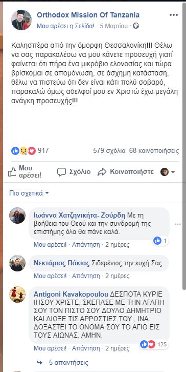 Διαβάζουμε στην σελίδα του Facebook το μήνυμα του Σεβασμιωτάτου.