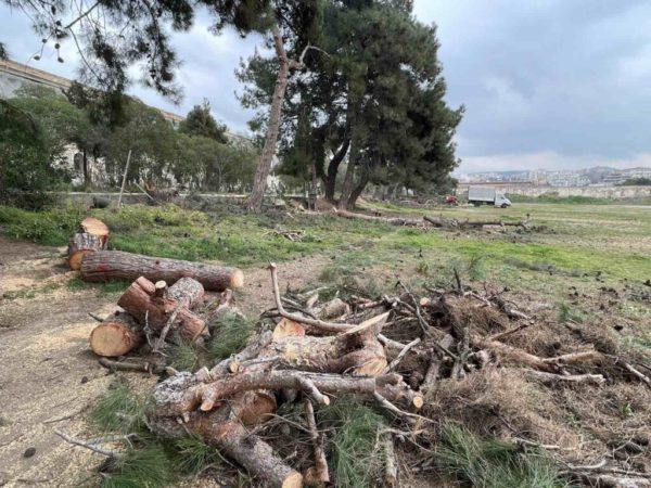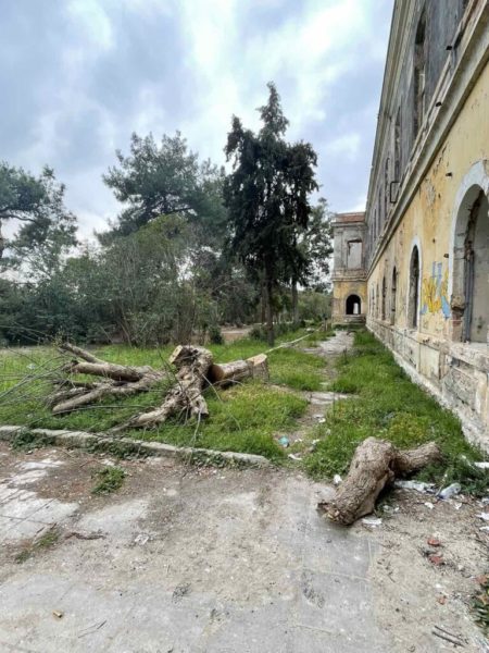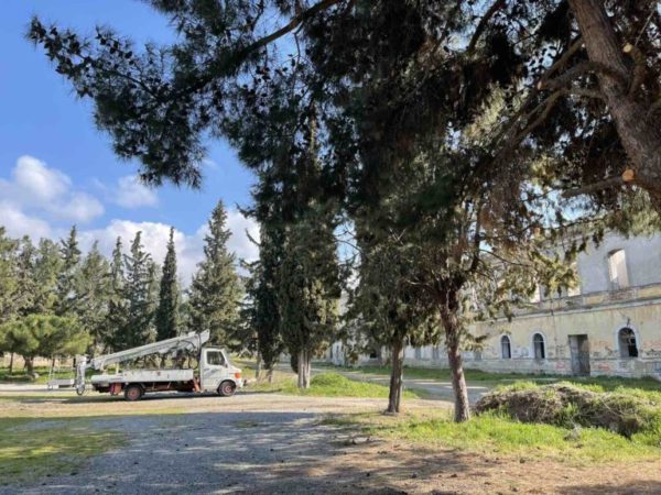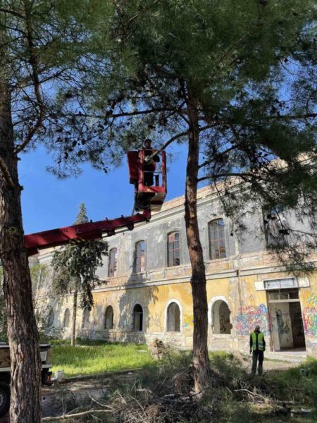 Την τελευταία εβδομάδα (14-26 Φεβρουαρίου), συνεχίστηκαν οι εργασίες ανανέωσης και προστασίας της υφιστάμενης βλάστησης, με κοπή δέντρων (πεύκα, ακακίες, λιγούστρα) καθώς και σχολαστικά κλαδέματα σε πεύκα μεγάλης ηλικίας, κυρίως στην περιοχή της μνήμης, στην ‘’πλατεία’’ με την εμφατική παρουσία των δύο ιστορικών κτιρίων στρατωνισμού Α2 και Α3 του πρώην στρατοπέδου.