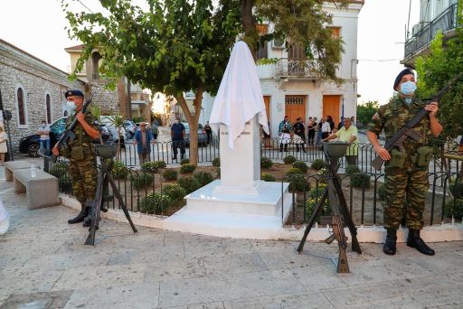 Μητροπολίτης Αιτωλίας-Αρχηγός ΓΕΕΘΑ στα αποκαλυπτήρια προτομής Καραϊσκάκη