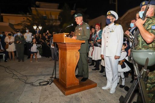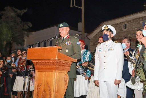 Κλείνοντας τον χαιρετισμό του, ο Αρχηγός ΓΕΕΘΑ συνεχάρη τους διοργανωτές της τελετής και χαρακτήρισε την πρωτοβουλία της ανέγερσης της Προτομής πραγματικά αξιέπαινη, με το αγέρωχο πρόσωπό του Στρατηγού «να αποτελεί πηγή στρατιωτικής έμπνευσης και Εθνικής έπαρσης, δείχνοντας τον δρόμο της αυταπάρνησης και της μαχητικότητας που πρέπει να βαδίσουμε, προκειμένου να κρατήσουμε την Ελλάδα ελεύθερη και υπερήφανη όπως μας την παρέδωσε εκείνος».