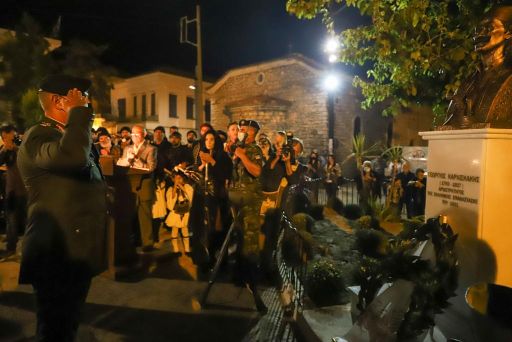 Ο Αρχηγός ΓΕΕΘΑ κατέθεσε στεφάνι στην προτομή του Ήρωα που ανεγέρθη στην κεντρική πλατεία του Αιτωλικού και απηύθυνε χαιρετισμό, στον οποίο εξήρε τα ηγετικά χαρίσματα και τις στρατιωτικές αρετές του Αρχιστρατήγου της Ρούμελης που με τα εμπνευσμένα στρατηγικά του σχέδια και τις ιδιοφυείς τακτικές του κατάφερνε να ανατρέπει τους άνισους αριθμητικούς συσχετισμούς, οδηγώντας στη νίκη τους ελλιπώς εξοπλισμένους Έλληνες.
