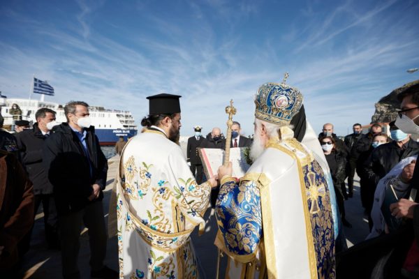 Την τελετή Αγιασμού των υδάτων στον Άγιο Ευστράτιο παρακολούθησε ο πρωθυπουργός, Κυριάκος Μητσοτάκης, χοροστατούντος του μητροπολίτη Λήμνου και Αγίου Ευστρατίου κ. Ιεροθέου.