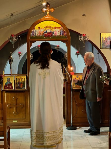 Της Ιεράς Συνάξεως προεξήρχε ο Ευλαβέστατος Οικονόμος π. Χρήστος Νγκέλας , συμπροσευχομένου εν ταπεινή συνδιακονία του Πρωτοπρεσβυτέρου π. Νικολάου Αργυρίου. Το ιερό αναλόγιο διακόνησε με ευλάβεια ο Αναγνώστης Θωμάς Χαντζής, ο οποίος εμπλούτισε μουσικά την Ιερά Ακολουθία.