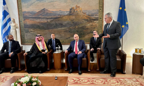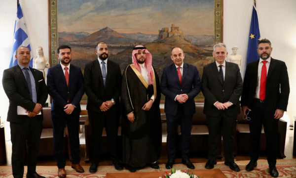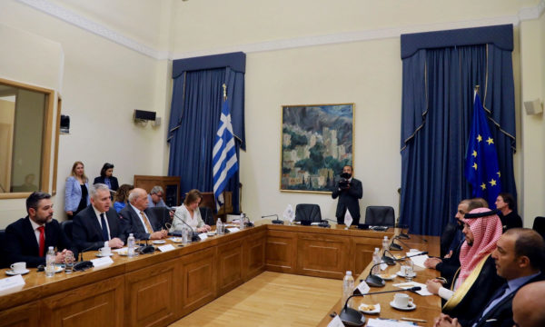 Ο Μ. Χαρακόπουλος και ο αναπληρωτής Γ.Γ. της MWL Alshehri στον Α΄ Αντιπρόεδρο της Βουλής Γιάννη Πλακιωτάκη