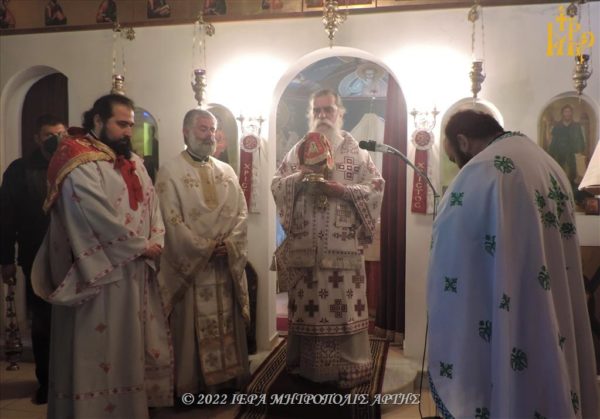 Την Τρίτη του Πάσχα, 26 Απριλίου 2022, το πρωί, ο Σεβασμιώτατος Μητροπολίτης Άρτης κ. Καλλίνικος προεξήρχε της Θείας Λειτουργίας στο πανηγυρίζον παρεκκλήσιο των Αγίων Ραφαήλ, Νικολάου και Ειρήνης, Άνω Καλεντίνης (συνοικισμός Πλακουτσαίικα) Άρτης.