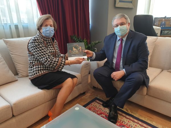 Ένα από τα πρώτα αντίτυπα του πολυτελούς τόμου «Mόδα και Πολυτέλεια στη Βλαχία της Ελληνικής Επανάστασης» προσέφερε στον Γενικό Γραμματέα Δημόσιας Διπλωματίας και Αποδήμου Ελληνισμού, κ. Γιάννη Χρυσουλάκη, η ευεργέτιδα του Ελληνισμού της Αιγύπτου, Αρχόντισσα και Πρέσβειρα Απόδημου Ελληνισμού του Πατριαρχείου Αλεξανδρείας και Πάσης Αφρικής, κα Αικατερίνη Μπελεφάντη – Σοφιανού.