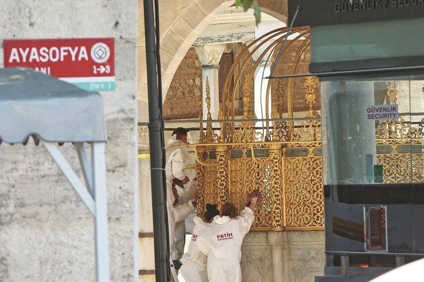 Ο πρόεδρος της Υπηρεσίας Θρησκευτικών Υποθέσεων Αλί Ερμπάς επιθεώρησε χθες την Αγία Σοφία για περίπου δύο ώρες: «Μέχρι αυτή την ώρα οι προετοιμασίες συνεχίζονται. Το χαλί έχει τοποθετηθεί, ενώ έχει καθαριστεί και ο εξωτερικός χώρος. Όλα θα είναι έτοιμα για την Παρασκευή” υπογράμμισε