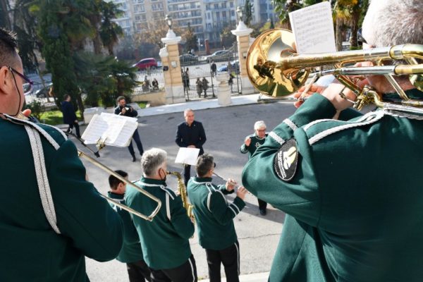 Μπάντες και Χορωδίες έψαλαν, σήμερα, τα κάλαντα, στο γραφείο του Υφυπουργού Εσωτερικών, αρμόδιου για θέματα Μακεδονίας – Θράκης κ. Σταύρου Καλαφάτη, στο Διοικητήριο.