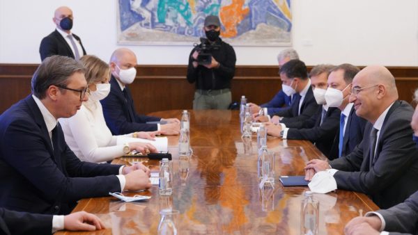 “Έγινα δεκτός στο Βελιγράδι από τον Πρόεδρο της Σερβίας. Συζητήσαμε για την ενίσχυση της διμερούς συνεργασίας στο πλαίσιο της Κοινής Δήλωσης που υπογράφηκε στο 3ο Ανώτατο Συμβούλιο Συνεργασίας Ελλάδας – Σερβίας και ανταλλάξαμε απόψεις για τα Δ. Βαλκάνια” ανέφερε με ανάρτησή του ο υπουργός Εξωτερικών κ. Νίκος Δένδιας.