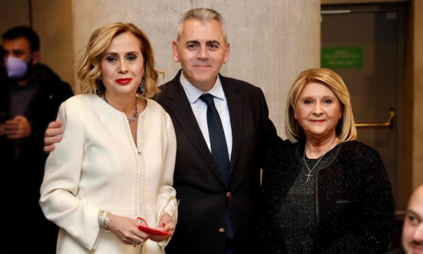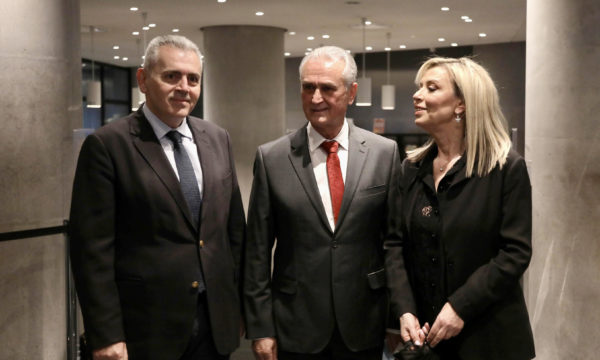 Ο επικεφαλής της ΔΣΟ με την εκπρόσωπο της κυβέρνησης, υφυπουργό Μετανάστευσης Σοφία Βούλτεψη και την πρόεδρο της ΕΣΗΕΑ Μαρία Αντωνιάδου.