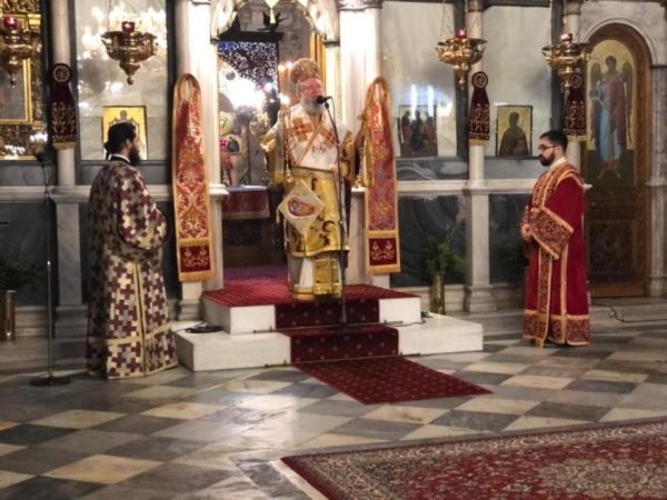 O Σεβασμιώτατος Μητροπολίτης Χαλκίδος κ. Χρυσόστομος, μετέβη στην ιστορική Παλαιοχριστιανική Βασιλική της Αγίας Παρασκευής Πολιούχου Χαλκίδος, όπου και χοροστάτησε στον Όρθρο και στην συνέχεια προέστη στην Θεία Λειτουργία, συλλειτουργούντων του Προϊσταμένου της Ενορίας, Αρχιμ. Συμεών Ηλιοδρομίτη και του Διακ. Νικολάου Πριμηκύριου και συμμετεχόντων, των κατά το Νόμον προβλεπομένων, εκκλησιασθέντων πιστών, μεταξύ των οποίων η Δήμαρχος Χαλκιδέων κ. Έλενα Βάκα και ο Διοικητής της Σχολής Πεζικού Υποστράτηγος Γεώργιος Χατζηγεωργίου.