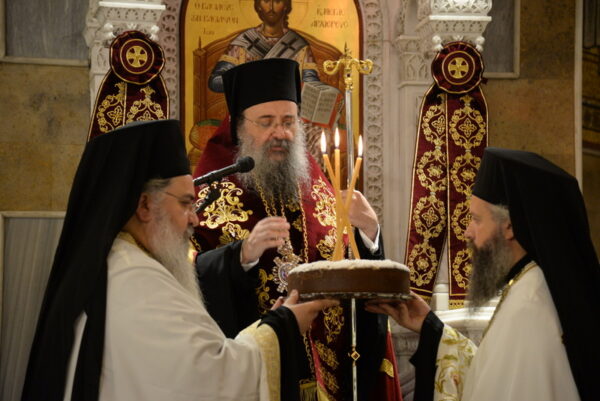Τέλος ο Σεβασμιώτατος Μητροπολίτης Πατρών ευχαρίστησε τους Ιερείς, τους Άρχοντες του τόπου, και όλον τον Λαό για την συμμετοχή τους στην θεία Λειτουργία και ευχήθηκε μέσω του τηλεοπτικού διαύλου της ΕΡΤ, η οποία μετέδιδε την Θεία Λειτουργία, υγεια, χαρά και ευτυχία σε όλο τον κόσμο.