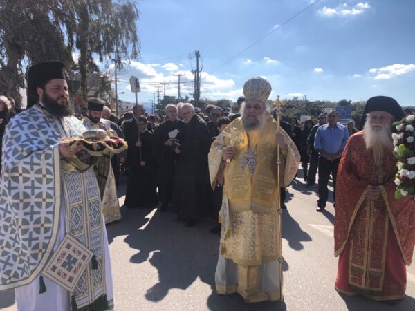 Εν συνεχεία πραγματοποιήθηκε η Λιτάνευση της Ιεράς Εικόνος και του αποτμήματος του Ιερού Λειψάνου του Αγίου στους δρόμους της ενορίας.