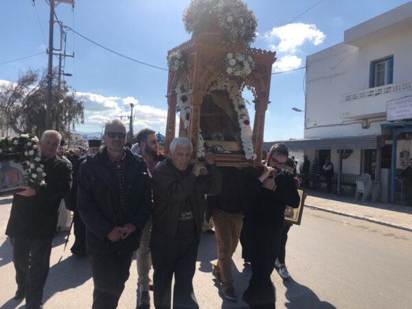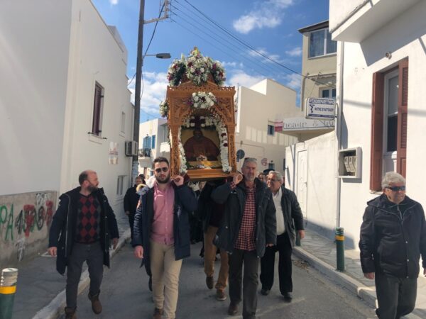 Ανήμερα της εορτής 1-3-2020 (λόγω μεταθέσεως κατά μία ημέρα) τελέσθηκε η Πανηγυρική Αρχιερατική Θεία Λειτουργία, προεξάρχοντος του Σεβασμιωτάτου Μητροπολίτου Παροναξίας, με την παρουσία του Δημάρχου Νάξου και Μικρών Κυκλάδων κ. Δημήτρη Λιανού καθώς και άλλων εκπροσώπων των Τοπικών Αρχών της Νήσου. Τον Θείο Λόγο κήρυξε ο π. Νεκτάριος Αλεξόπουλος.