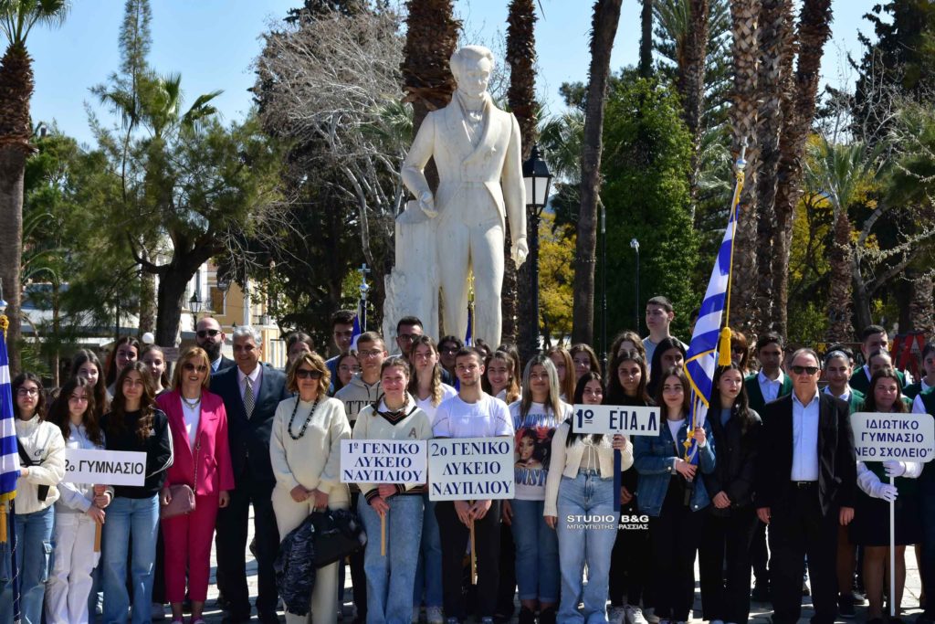 Κατάθεση στεφάνων στον ανδριάντα του πρώτου Κυβερνήτη της Ελλάδος Ιωάννη Καποδίστρια έκαναν μαθητές των σχολείων της πόλης του Ναυπλίου, εν όψη της εορτής της 25 Μαρτίου 1821.