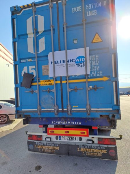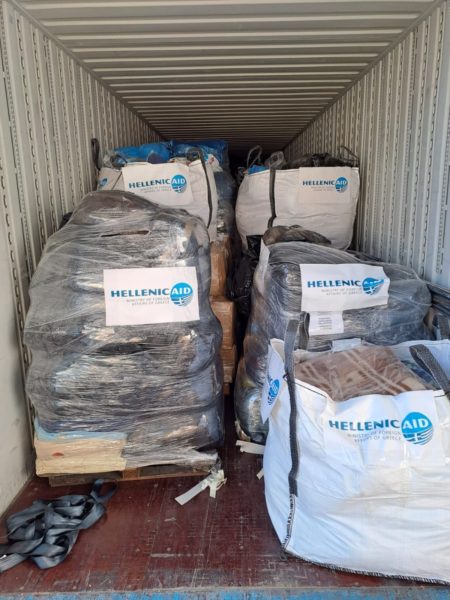 Τα είδη συγκεντρώθηκαν από δήμους όλης της Ελλάδας και το «Όλοι μαζί μπορούμε» και η μεταφορά τους στο λιμάνι της Πάτρας οργανώθηκε από την Κεντρική Ένωση Δήμων Ελλάδας (ΚΕΔΕ) υπό τον συντονισμό του υπουργείου Εξωτερικών.