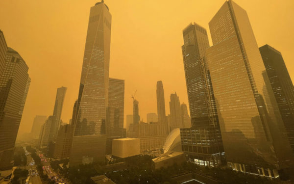 Ο καπνός που καλύπτει μεγάλες περιοχές της Νέας Υόρκης, συμπεριλαμβανομένης της πόλης της Νέας Υόρκης, αναμενόταν να καταστήσει επικίνδυνο τον αέρα μέχρι την Πέμπτη, σύμφωνα με την Εθνική Μετεωρολογική Υπηρεσία.