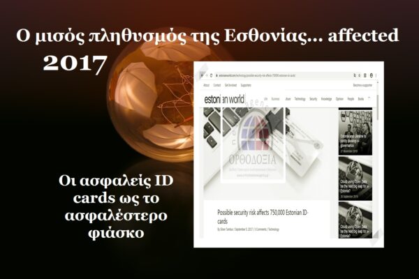 Ό, τι, λοιπόν, δεν έκαναν οι αρμόδιοι φορείς της ελληνικής πολιτείας ως όφειλαν, το κάνουμε εμείς ως επίσης οφείλουμε, μην ξέροντας, εξάλλου, τι να πρωτοφωτίσουμε από ένα διεθνώς βεβαρημένο ιστορικό, το οποίο – ιδιαιτέρως – εντός των συνόρων της Εσθονίας έχει σηκώσει «ιστορικά τρόπαια» αναξιοπιστίας, ελαφρότητας και αντιμετώπισης των προσωπικών δεδομένων της ID κάρτας των πολιτών ως software, που, ενώ ανακοινώθηκε επισήμως ως «μπάτε σκύλοι αλέστε» (2017), αντιμετωπίστηκε επισήμως με ένα κρατικό update, χωρίς καμία απόσυρση, ούτε μίας κάρτας, αλλά, παρά μόνον με αναστολή σε επίπεδο υπηρεσιών, για το αναγκαίο διάστημα.