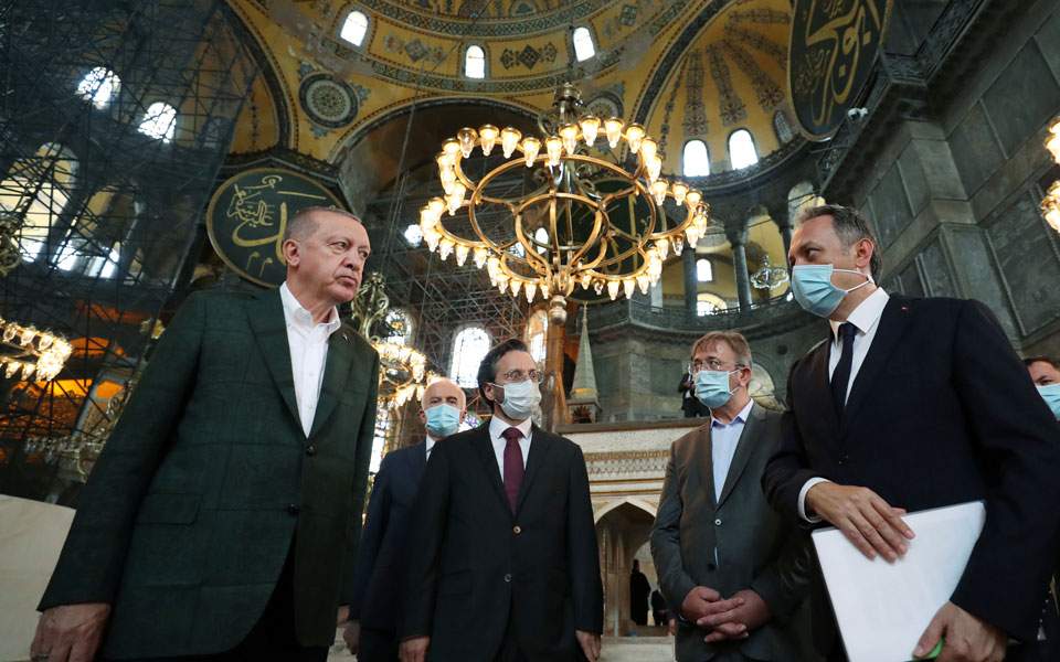 Με τη μετατροπή της Αγίας Σοφίας σε τζαμί, ο Ερντογάν επωμίστηκε τη βαριά ευθύνη του «κηδεμόνα» για ένα από τα πιο σημαντικά μνημεία σε διεθνές επίπεδο και αυτό είναι κάτι που δεν τού επιτρέπεται να το ξεχνάει, καταλήγει ο συντάκτης του άρθρου.