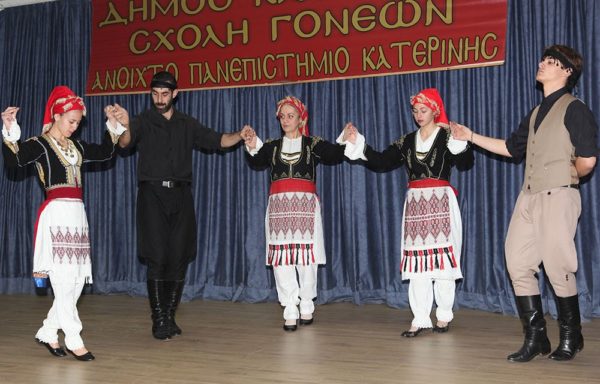 Η εκδήλωση ξεκίνησε με το χορευτικό συγκρότημα του Συλλόγου Κρητών Πιερίας «Οι Σταυραετοί» και χαιρετισμό από τον Πρόεδρο Κρητών κ. Κωνσταντίνο Μανιουδάκη.