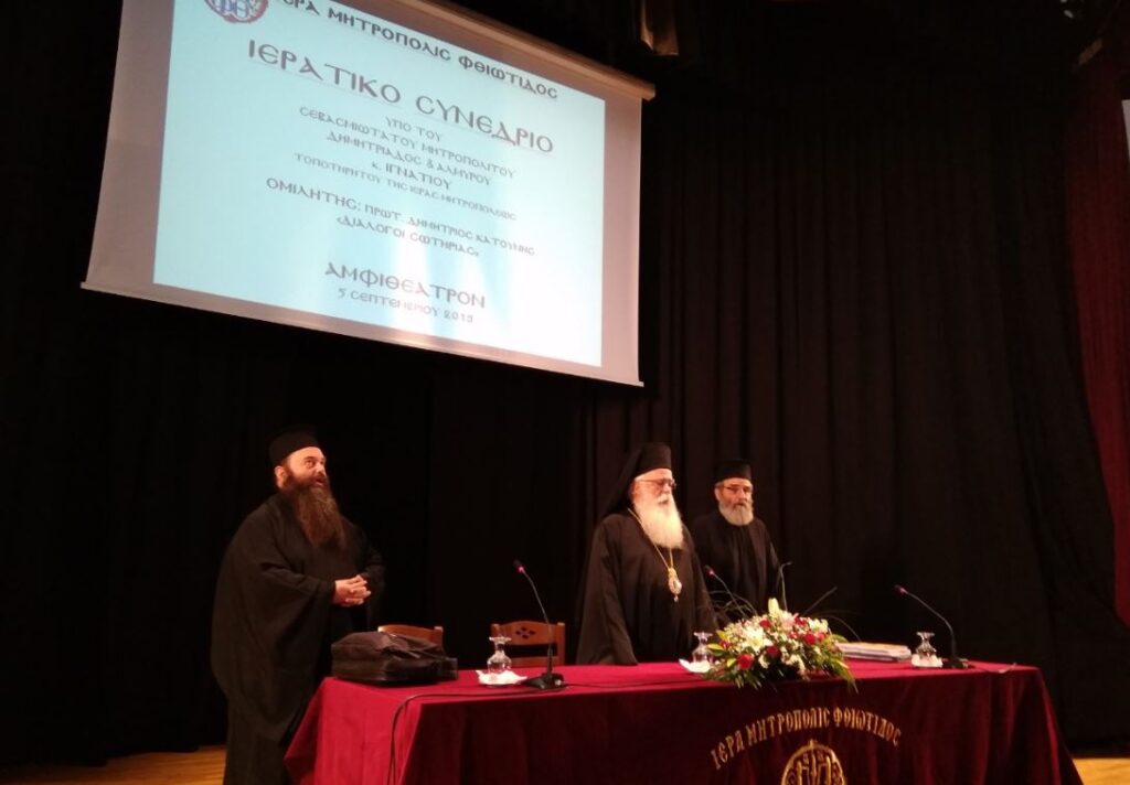 Με επιτυχία πραγματοποιήθηκε το Ιερατικό Συνέδριο απάντων των Κληρικών της Ιεράς Μητροπόλεως Φθιώτιδος, το πρωί της Πέμπτης 5 Σεπτεμβρίου 2019, στο Αμφιθέατρο της Ιεράς Μητροπόλεως Φθιώτιδος. Το Συνέδριο αυτό είναι το πρώτο μετά την αιφνίδιο εκδημία του μακαριστού πατρός και Ποιμενάρχου κυρού Νικολάου.