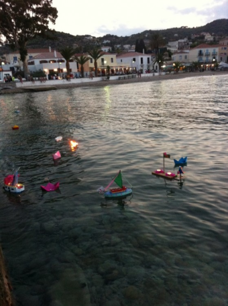 Μπροστά στην εκκλησία, πάνω στην παραλία, μαζεύονται δεκάδες παιδιά. Έχουν κατασκευάσει αυτοσχέδια καραβάκια, άλλα ξύλινα, άλλα πλαστικά, στολισμένα με σημαίες και λουλούδια. Σ’ αυτά, όταν σουρουπώνει, ανάβουν κεράκια και τα ρίχνουν στη θάλασσα. Το ρεύμα παρασύρει τα σκάφη με τις μικρές φλόγες, κι εξαφανίζονται στ’ανοιχτά, ενώ οι αμαξάδες του νησιού φέρνουν τα άλογά τους με τα αμαξάκια για να αγιασθούν, όπως και όλα τα οικόσιτα ζώα. Είναι προστάτης των οικόσιτων ζώων και κυρίως των μικρών παιδιών.