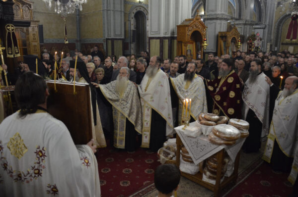 Το πρωί της Πέμπτης στην ακολουθία του Όρθρου και την πολυαρχιερατική, Θεία Λειτουργία προεξήρχε ο Σεβασμιώτατος Μητροπολίτης πρώην Άρτης κ. Ιγνάτιος και συλλειτούργησαν ο Θεοφιλέστατος Επίσκοπος Κερνίτσης κ. Χρύσανθος και ο Σεβασμιώτατος Ποιμενάρχης, Μητροπολίτης Αιτωλίας και Ακαρνανίας κ. Κοσμάς.