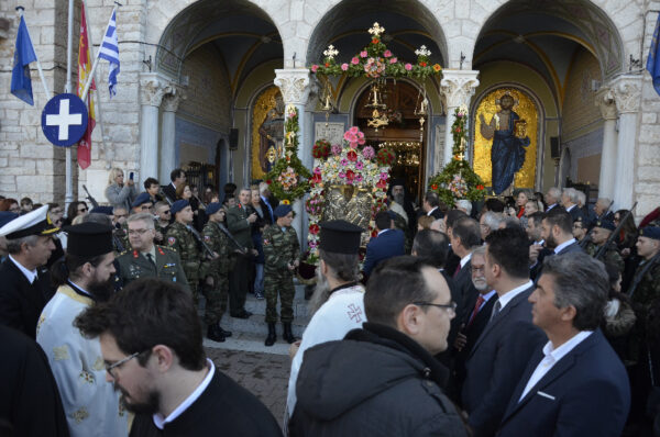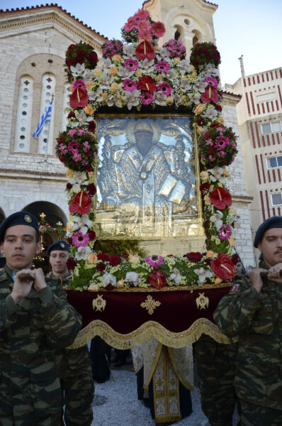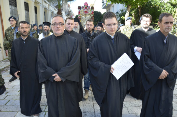 Λάμπρος και πάνδημος ήταν ο εορτασμός στην Ιερά Πόλη του Μεσολογγίου, της οποίας ο Άγιος είναι ο προστάτης και ο πολιούχος. Στον πανηγυρικό Εσπερινό, που τελέσθηκε το απόγευμα της Τετάρτης στον πανηγυρίζοντα, ομώνυμο, Ιερό Μητροπολιτικό Ναό, χοροστάτησε ο Θεοφιλέστατος Επίσκοπος Κερνίτσης κ. Χρύσανθος και συμμετείχαν ο Πρωτοσύγκελλος της Ιεράς Μητροπόλεως Πατρών αρχιμ. Αρτέμιος Αργυρόπουλος, ο Πρωτοσύγκελλος της Ιεράς Μητροπόλεως μας και Προϊστάμενος του Ναού αρχιμ. Επιφάνιος Καραγεώργος και πλήθος ιερέων από την περιφέρεια Μεσολογγίου και όλη την Ιερά Μητρόπολη.
