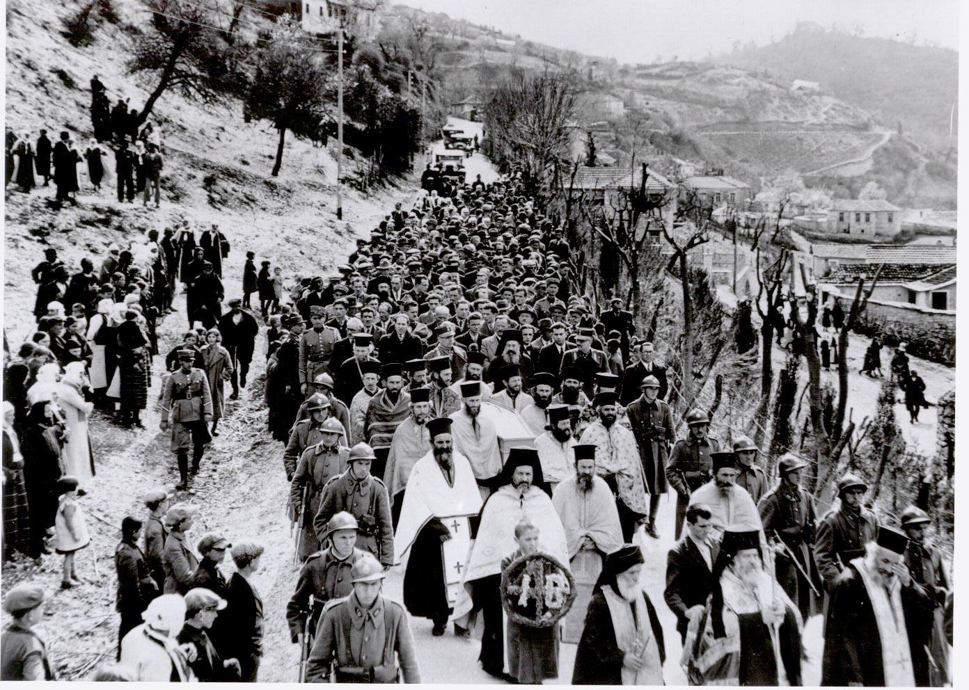 Τον Αύγουστο του 1916 ο Ιταλικός Στρατός άρχισε να καταλαμβάνει την Βόρειο Ήπειρο, εκμεταλλευόμενος τον Εθνικό Διχασμό στην Ελλάδα. Στις 22 Σεπτεμβρίου 1916 ο Μητροπολίτης Βασίλειος απελάθηκε με βία από τις ιταλικές κατοχικές αρχές, ως “επικίνδυνος για τη δημόσια ασφάλεια”, οπότε μετέφερε την έδρα του στο Δελβινάκι του ελεύθερου Πωγωνίου (πάνω φώτο).
