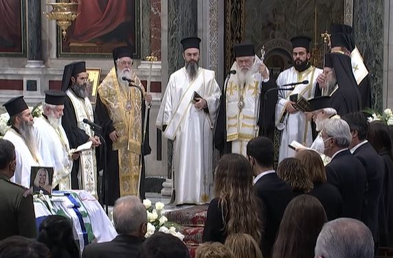 Στην εξόδιο ακολουθία συγχοροστατούσαν οι Σεβασμιώτατοι Μητροπολίτες Λαοδικείας κ. Θεοδώρητος, Νέας Ιωνίας και Φιλαδελεφείας κ. Γαβριήλ και Φθιώτιδος κ. Συμεών, ο Πρωτοσύγκελλος της Ιεράς Αρχιεπισκοπής Αθηνών Αρχιμανδρίτης π. Βαρνάβας Θεοχάρης και οι πατέρες του ναού, ενώ παρεβρέθηκε σύσσωμη η πολιτική, πολιτειακή και στρατιωτική ηγεσία της χώρας.