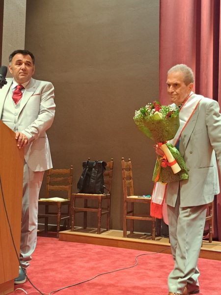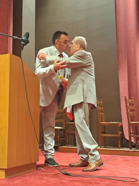 Στη συνέχεια ακολούθησε η απονομή από τον πρόεδρο Υποψ. Διδάκτορα Θεολογίας Αθανάσιο Δημητρίου με Τιμητική Διάκριση και το μετάλλιο του Σωματείου στον κ. Θεόδωρο Βασιλικό ο οποίος έψαλε, τραγούδησε και δέχτηκε τις ευχές των συναδέλφων ιεροψαλτών, τόσο παλαιών μαθητων του αλλά και αρκετών που ήρθαν από γειτονικές πόλεις για να τον ακούσουν.