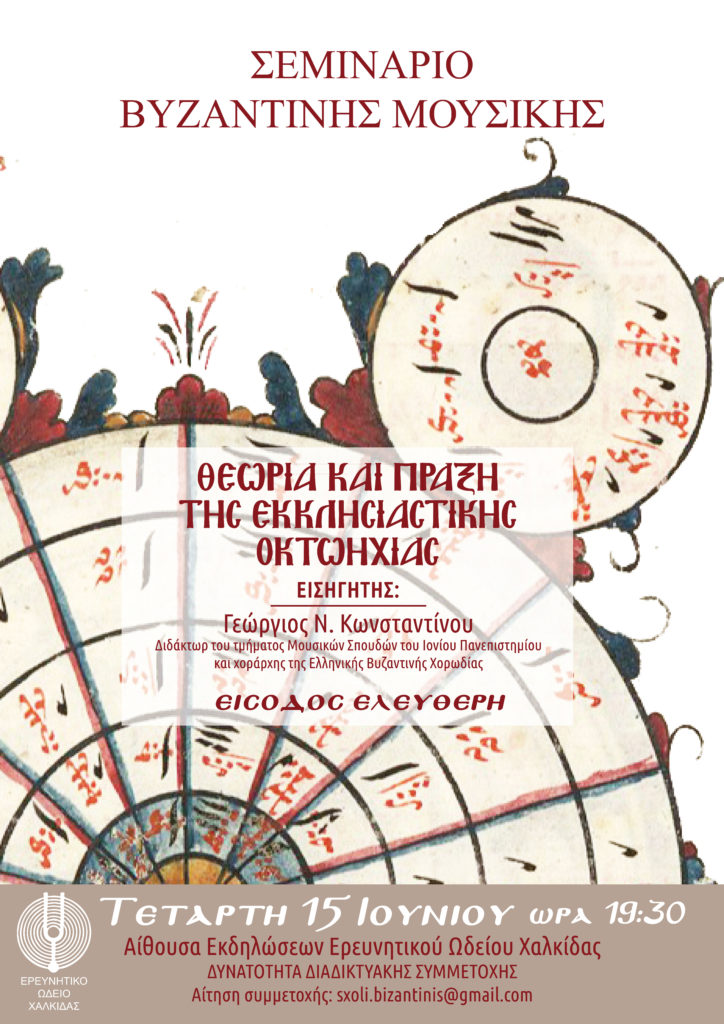 Συνεχίζοντας την πολύχρονη παράδοση στην διδασκαλία και διάδοση της Βυζαντινής Μουσικής στην πόλη των ακατάληπτων παλιρροιών, το Ερευνητικό Ωδείο Χαλκίδας, την Τετάρτη 15 Ιουνίου 2022 και ώρα 19:30, διοργανώνει για πρώτη φορά στην ιστορία του σεμινάριο Ψαλτικής Τέχνης με θέμα: «Θεωρία και Πράξη της Εκκλησιαστικής Οκτωηχίας».
