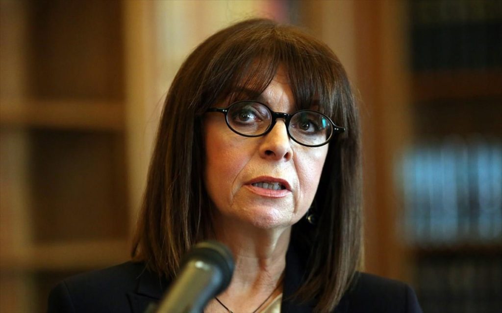 Αμέσως μετά, η κυρία Σακελλαροπούλου κατέθεσε στεφάνι στον Ανδριάντα του Ναυάρχου Ανδρέα Μιαούλη και έκανε την ακόλουθη δήλωση: