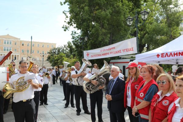Ο Ελληνικός Ερυθρός Σταυρός, στο πλαίσιο του εορτασμού της Παγκόσμιας Ημέρας Ψυχικής Υγείας, την Πέμπτη, 10 Οκτωβρίου 2024, διοργάνωσε μεγάλη εκδήλωση για μικρούς και μεγάλους στην Πλατεία Συντάγματος, εγκαινιάζοντας παράλληλα την Κινητή Μονάδατου Ε.Ε.Σ. για την Ψυχοκοινωνική Υποστήριξη Ευάλωτων Ομάδων του πληθυσμού. Την εκδήλωση επένδυσε μουσικά η μπάντα του Δήμου Αθηναίων.