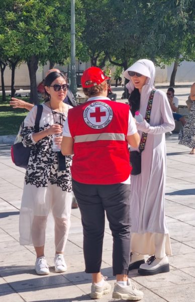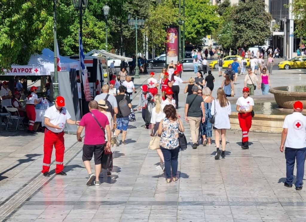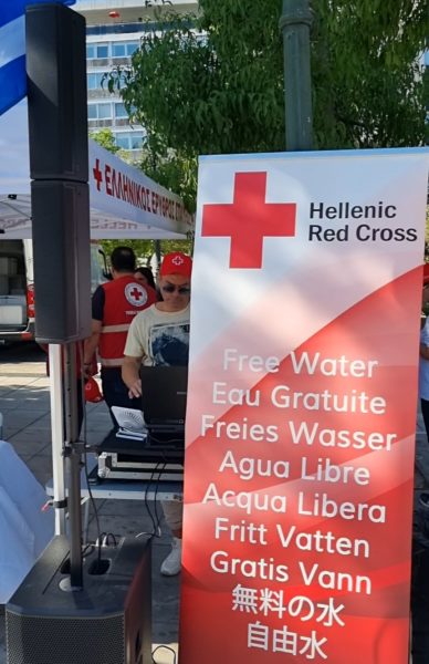 Ο Ελληνικός Ερυθρός Σταυρός ενίσχυσε τους πολίτες στο κέντρο της Αθήνας λόγω των υψηλών θερμοκρασιών