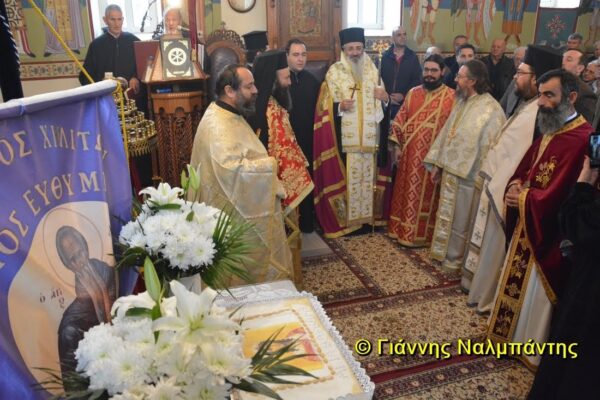 Στο τέλος της Θείας Λειτουργίας, ο Μητροπολίτης ευλόγησε το κόλλυβο της Αγίας που ετοίμασε ο Σύλλογος Χηλητών “Ο Άγιος Ευθύμιος”.