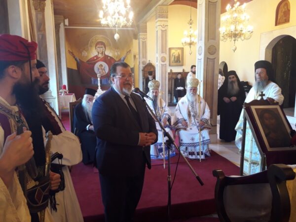 Στην αντιφώνησή του, ο Σεβασμιώτατος Μητροπολίτης Καλαβρύτων κ. Ιερώνυμος, ευχαρίστησε ευγνωμόνως τον Σεβασμιώτατο Μητροπολίτη Πατρών για την φιλάδελφο παρουσία του και, απευθυνόμενος στους πι-στούς, που παρά τις δύσκολες συνθήκες της περιόδου αυτής κατέκλεισαν την Ιερά Μονή με την ζωντανή παρουσία τους, τόνισε ότι η πίστη στον Χριστό είναι η μοναδική σανίδα της σωτηρίας μας, αλλά και της πατρίδας μας. Τέλος, εξέφρασε τις θερμές ευχαριστίες του σε όλους όσοι συ-νέβαλαν στην διοργάνωση των φετινών εκδηλώσεων.