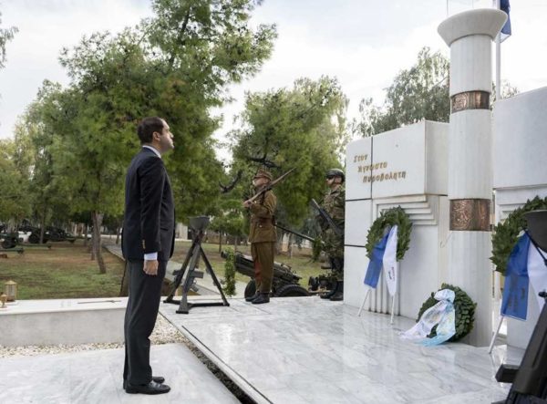 Ο κ. Κεφαλογιάννης μετά το πέρας της δοξολογίας κατέθεσε στεφάνι στο Μνημείο Πεσόντων Αγνώστου Πυροβολητού και παρακολούθησε σύντομη επίδειξη οπλικών συστημάτων Πυροβολικού.