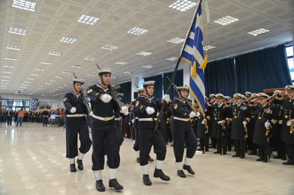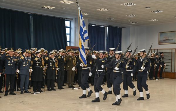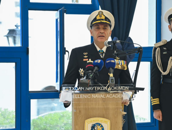 Με ιδιαίτερη χαρά, μεγάλη περηφάνια και μοναδική τιμή, σας καλωσορίζουμε στη Σχολή Ναυτικών Δοκίμων, σε μια εορτή ορόσημο για το Πολεμικό μας Ναυτικό. Με σεβασμό και ιδιαίτερη συγκίνηση στέκομαι σήμερα μπροστά σας και μπροστά στα ιερά σύμβολα του ΠΝ και της Πατρίδας, στον ίδιο χώρο που ως Δόκιμος απέδιδα τιμές φέροντας την πολεμική Σημαία της Σχολής Ναυτικών Δοκίμων. Η παρουσία σας αναδεικνύει την κληρονομιά του Πολεμικού Ναυτικού και τιμά τον προστάτη μας, Άγιο Νικόλαο, που ανέκαθεν υπήρξε φάρος ελπίδας σε κάθε ταξίδι μας, σε κάθε φουρτούνα, σε κάθε δυσκολία, σε κάθε πρόκληση.