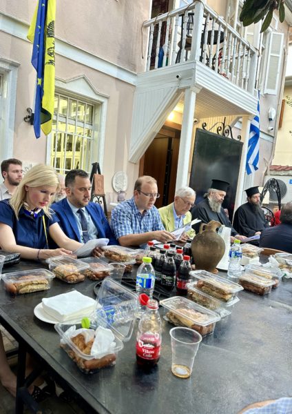 Έπειτα, έγιναν οι σχετικές Ομιλίες για το Μακεδονικό Ζήτημα, λόγω επικαιρότητος του κ. Ιωάννου Τσούρα, Επ. Μέλους Ι.Ε.Θ.Π., Δ/ντού Ιδιαιτέρου Γραφείου Μακαριωτάτου Αρχιεπισκόπου Αθηνών Ιερωνύμου Β΄, με θέμα: «Το Μακεδονικό σήμερα. Η Συμφωνία των Πρεσπών 2018» και του κ. Μάρκου Μπόλαρη, Επ. Μέλους Ι.Ε.Θ.Π. και τ. ΥΠΕΞ, με θέμα: «Η αναθεώρηση των σχολικών βιβλίων στη Δημοκρατία της Βορείου Μακεδονίας, κατά την Συμφωνία των Πρεσπών». Ο κ. Μπόλαρης, Πρόεδρος διατελέσας της Ειδικής Μικτής Επιτροπής, από Ελληνικής πλευράς.